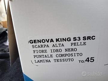 Scarpe antinfortunistica in pelle fiore nere K-way, mod. Genova King S3 SRC. Nuove, ancora con etichetta e nel loro imballo originale. Con puntale rinforzato. Adatte per edilizia, impiantistica,etc. taglia 45