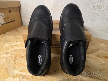 Scarpa da lavoro antinfortunistica bassa marca Safe, taglia 45, con punta in metallo, semplici in pelle nera, NUOVE mai indossate, complete di scatola.