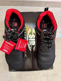 SUOLA: PU/GOMMA. Parte interna in poliuretano a cellule larghe con notevole effetto memoria per incrementare l’ammortizzazione e l'effetto anti-shock. Il battistrada in gomma nitrilica dalla scolpitura pronunciata e bicolore nero/rosso ha caratteristiche di resistenza a idrocarburi, nonché resistenza allo scivolamento su superfici bagnate. Gli inserti di colore rosso con una densità e durezza maggiore, conferiscono alla suola caratteristiche anti torsione e la rendono predisposta per ambienti ghiaiosi, rocciosi o irregolari.