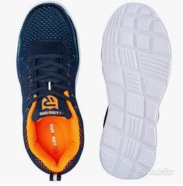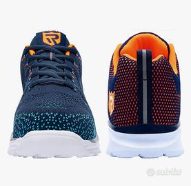 Sono di colore blu e arancione, con un design moderno e accattivante.