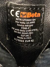 Vendo scarpe da lavoro basse S1P SRC marca Beta modello 7246E tg.42 in pelle scamosciata di colore grigio chiaro, utilizzate solamente una volta, ma cambio a causa di acquisto taglia errata.
