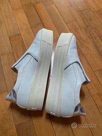 Scarpe in pelle, bianche, chiuse, con rialzo, mai indossate, adatte ad ambienti di lavoro, per: dottoresse, infermiere, oss, ausiliarie, cuoche ecc. Taglia 38.