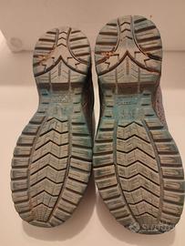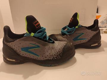 Tomaia in tessuto tecnico traspirante, anti abrasione e x-leather; suola in tyre bicomponente PU/TPU, anti perforazione e puntale in alluminio.