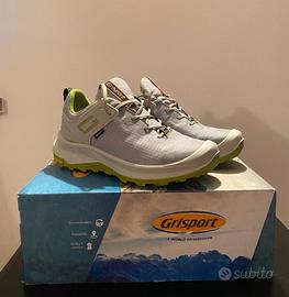scarpe da montagna marca Grisposrt nr 39 impermeabili colore grigio chiaro, verde usate 2 volte vendesi per averle acquistate con un numero in meno