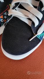 scarpe da mezza stagione con stile vivace e colorato. - Tomaia in tessuto nero con inserti stampati. - Lacci bianchi. - Suola bianca estraibile.