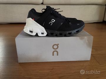 Vendo scarpe da running,CLOUDFLYER 4, colore nero e bianco, numero 9/5( corrisponde al numero 43), mai usate, praticamente pari al nuovo, vendo causa errato acquisto( numero troppo grande)