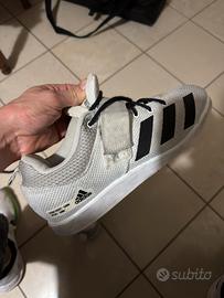 Vendo scarpe da sollevamento pesi Adidas Powerlift 5 originali, colorazione Cloud White / Core Black. Condizioni: Pari al nuovo (indossate solo 3 volte in palestra per testare la taglia). Non presentano alcun segno di usura, graffio o odore. La suola è immacolata. Dettagli Tecnici: • Taglia: 44 EU • Modello: Unisex Powerlift 5 • Caratteristiche: Intersuola alta ad alta densità per la massima stabilità durante squat e stacchi. Tomaia in tela resistente con inserti in mesh per la traspirazione. • Chiusura: Combinazione di lacci e cinturino a strappo sul mesopiede per un bloccaggio totale del piede. Motivo della vendita: Purtroppo per me sono leggermente strette, devo passare alla taglia successiva. Le scarpe sono perfette per chi pratica Powerlifting, Bodybuilding o Crossfit e cerca una base solida per i sollevamenti olimpici senza spendere il prezzo del nuovo in negozio.