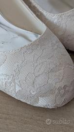 Condizione: Usate solo il giorno del matrimonio. Le suole mostrano i normali segni d'uso, ma la tomaia e i tacchi sono in ottime condizioni. Sono state pulite e conservate con cura.