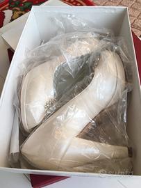 Calzatura da sposa di alta moda in vera pelle realizzata artigianalmente a mano.