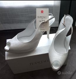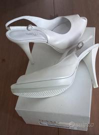 Scarpe da sposa in pelle morbida con plateau, nuove, ho fatto applicare suola e tacco in gomma, ritiro a mano in provincia di Como.