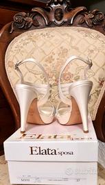 Vendo scarpe da sposa, 'ELATA SPOSA', Made in Italy, in Raso Crepe Satin Bianco, N°37, altezza totale tacco cm.12, plantari imbottiti, suole in vero cuoio, tacchi in gomma, calzano confortevolmente. Usate solo 500 metri, perfette e come nuove, per niente consumati tacchi e suole, vedi foto. Con scatola originale !