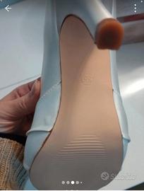 Décolleté da sposa numero 35, colore bianco avorio con elegante dettaglio in strass sul davanti. Tacco alto 10 cm e punta aperta, modello raffinato e femminile, perfetto per il grande giorno. Mai indossate per cambio scelta colore abito, in condizioni perfette. Vengono vendute complete di scatola originale e imballi interni.