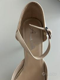 Vendo scarpe da sposa color avorio chiaro, usate solo una volta, utilizzabili comunque anche per altre occasioni. Numero 37,5. Ottima vestibilita’ e ottimo stato, tacco 5 cm perfetto. Marca: Anna Bella. Disponibili anche altre foto.