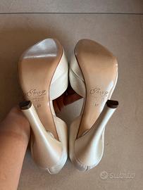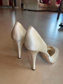 Scarpe da sposa, marca Penrose, numero 37, in seta color panna, mai indossate.
