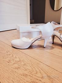 Vendo scarpe da sposa Alberto Roma, usate ovviamente una sola volta, altezza tacco 7cm con 1cm di rialzo. Abbastanza comode anche per chi non è abituato a portare i tacchi.