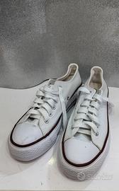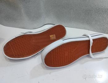 Scarpe da ginnastica basse in tela, mai indossate. - Tomaia in tessuto bianco. - Chiusura con lacci bianchi. - Suola in gomma vulcanizzata.