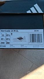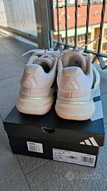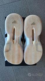 Scarpe da tennis di colore bianco, gamma medio-alta di adidas. Condizioni ottime, utilizzate solamente tre volte su campi di terra rossa (circa 6 h di gioco). Prezzo non trattabile.