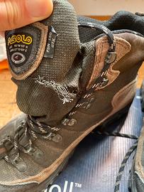 Scarpone Asolo da trekking, taglia 42 1/2 da uomo (ma immagino vadano bene anche per donna eventualmente), piccolo difetto sulla parte anteriore come da foto, materiale goretex e suola in vibram in ottime condizioni.