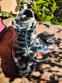 Scarpe trekking CMP waterproof quasi nuove. Numero 39 ma vestono piccolo, per questo le ho usate pochissimo. Scatola originale e cartellino all'interno.