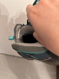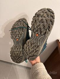 Scarpe trekking donna MH100 MID impermeabili blu Decathlon Caratteristiche Suola in PU aderente con tasselli da 4 mm. Membrana impermeabile e traspirante: piedi asciutti 3h con ogni meteo. Ammortizzazione integrale grazie all'intersuola in PU su tutta la scarpa. Tomaia mid. Ganci bloccanti per ripartire l'allacciatura tra piede e caviglia. Io porto un 36 e ho scelto la scarpa numero 37, per essere più comoda sono in perfette condizioni Consegna a mano sul Latina e occasionalmente, anzi Nettuno Euroma e Sabaudia o spedizione a carico dell acquirente