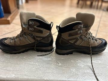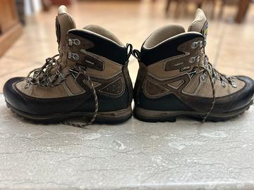 Scarpe da trekking ASOLO usate poco. Suola in vibram e tomaia in pelle e goretex. Impermeabili. Scarpe professionali e di ottima qualità. Presenta pochi sefni di usura visibili in foto