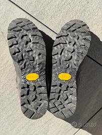 Vendo scarpe da trekking marca Montura, modello Tre Cime Evo GTX, colore grigio/nero/rosso, struttura impermeabile Gore-Tex, suola Vibram, taglia 40,5 EUR, fornite con imballo originale e lacci di ricambio. Usate due volte e vendo per taglia errata.