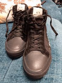 Vendo scarpe Armani ORIGINALI da uomo invernali, modello Exchange , colore nero, con suola antiscivolo a zig zag per ghiaccio e neve e punta rinforzata.