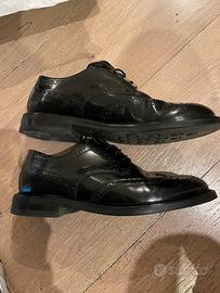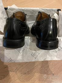 Scarpe da uomo, marca Antica Cuoieria, dí colore nero, misura 42, con custodia in tessuto mai utilizzata, e secondi lacci mai utilizzati, in ottime condizioni perché usate poco praticamente nuove.