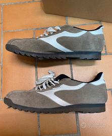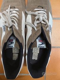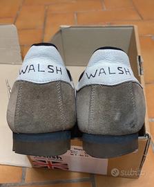 Scarpe Walsh color tortora in camoscio buono stato il retro della scarpa destra è leggermente “rifinito” causa guida auto, la suola buona, il retro delle suole è leggermente abbassato sulla sinistra per la scarpa sinistra e sulla destra per la scarpa a destra. Con scatola originale. Numero 43.
