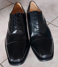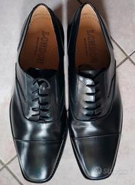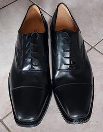 scarpe da uomo nuove eleganti basse con stringhe, vero cuoio, suola in cuoio e plantare anatomico in lattice di gomma, numero 45, nuove