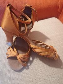 Vendo scarpe danza caraibica usate, vestono num 36/37, tacco rocchetto misura 5 cm inclusi salva tacchi.