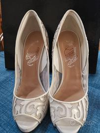 Decolleté nuova mai indossata in raso e seta da cerimonia Tacco 12 cm per eventi o serate. Perfetta sotto un abito da sera o sotto un jeans per una serata o evento. Plateau per un maggior confort , pelle per una qualità eccellente della scarpa e per la sua durabilità. Nuovo con sacca e scatola originali e in perfette condizioni