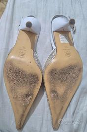 #accessori #donna #decolletè a #punta brand #labottegadelcuoio by Salvatore Di Dio in #capretto #bianco e #tessutolavorato con #applicazioni di #perline, #slingback con #cinturino alla #caviglia. #suolacuoio. #taccoricoperto in #pelle cm 9 Colore bianco e #oro #taglia36 #in ottimecondizioni - Perfette per occasioni speciali #accessories #women #décolleté #toe #leather #white #gold #beads #fabric #shoes #coveredheel #leathersole #excellentcondition #n36 #accessoires #damen #dekolleté #zehe #leder #weiß #gold #perlen #stoff #schuhe #bezogenerabsatz #ledersohle #hervorragenderzustand #N36 #accessoires #femme #décolleté #orteil #cuir #blanc #or #perles #tissu #chaussures #talonrecouvert #semellecuir #excellentétat #accesorios #mujer #escote #punta #cuero #blanco #oro #cuentas #tela #zapatos #tacónforrado #sueladecuero #excelenteestado