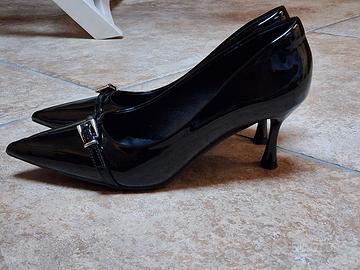scarpe in vernice nere con fibia usate poche volte tacco cm 7