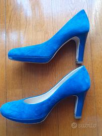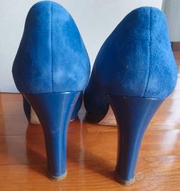 Scarpe décolleté camoscio, blu elettrico, misura 39, come nuove usate solo una volta per un matrimonio.