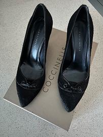 Vendo scarpe décolleté COCCINELLE nere, n 38, completamente in cavallino e inserti in vernice, tacco circa cm 8, usate pochissimo, praticamente nuove .