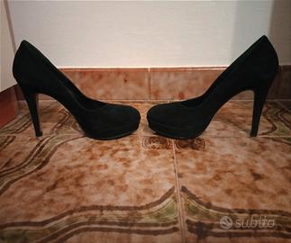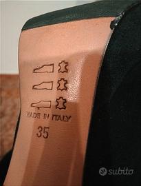 Ottime condizioni, mai usate, taglia 35, tacco 12, tessuto scamosciato nero con interno interno in pelle nero. Non disponibile nella confezione originale. Brand Naomi, Made in Italy.