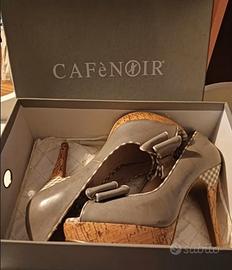 Meravigliose scarpe décolleté con tacco Cafè Noir color tortora, spuntate e con graziosissimo dettaglio di fiocco in punta.