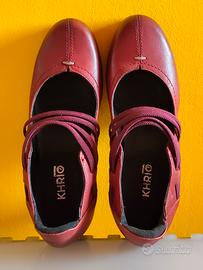 Vendo scarpe décolleté francesine donna Khrio' vintage vera pelle artigianali tacco di gomma con elastici al collo del piede morbide e comodissime molto femminili, tacco 7,5 cm, adatte a gonnelloni o jeans, usate 1 volta.