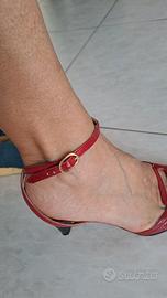 scarpe décolleté con cinturino alla caviglia tomaia in vera pelle suola in vero cuoio tacco alto cm 8 n. 35 brand Migliorini