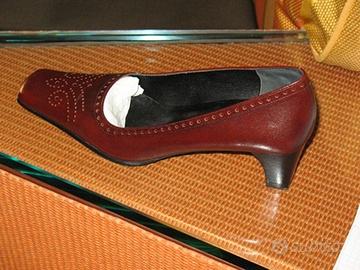 Scarpe decolleté originale Calzaturificio Caparrini Firenze, in vitello, colore marrone, punta quadrata, impunturata su parte anteriore, tacco 5, misura 36 e ½ , nuovissime vendo euro 20