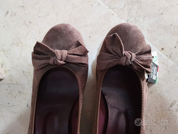 Décolleté Keys n.40 nuove con cartellino Color tortora con tacco basso In camoscio con fiocco