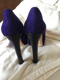 Bellissime décolleté in camoscio viola marca “Brian Atwood” Tacco 13’5 cm plateau interno 3’5 cm - n 37 Elegantissime