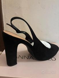Vendo causa modello doppio eleganti scarpe decolletté Anna Field n.38 Vegan scamosciate nere con cinturino al tallone regolabile. Nuove, senza cartellino. Complete di imballaggio e scatola originale. Indossate solo in casa per provarle. La scatola originale ha qualche difetto estetico dato dal tempo. Tutto come da foto. 👠 🖤