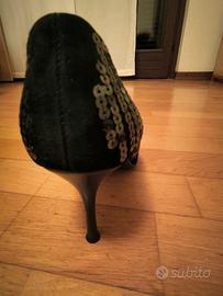 scarpe décolleté nere con paillettes tacco alto