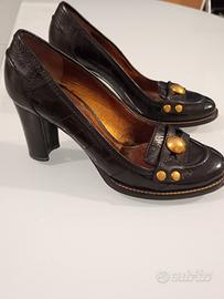 Vendo scarpe décolleté Dolce & Gabbana, Made in Italy, in vera pelle (vero cuoio), colore nero lucido con interni dorati e dettagli in metallo dorato con logo.