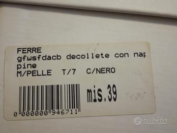 Vendesi scarpe n.39 in pelle nere Gianfranco Ferrè originali usate solo una volta per cerimonia, tacco 10cm. In perfetto stato.