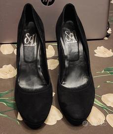 -Scarpe décolleté nere in camosciocon plateau.