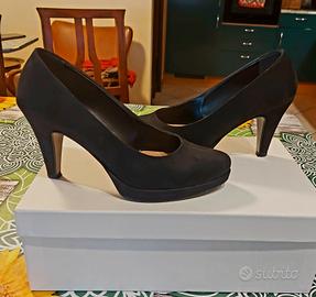 Vendo scarpe décolleté con plateau, scamosciate nere, taglia 37, indossate solo una volta in quanto troppo piccole, pari al nuovo