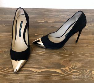Nere scamosciate con l'applicazione decorativa in metallo sulla punta, colore oro.